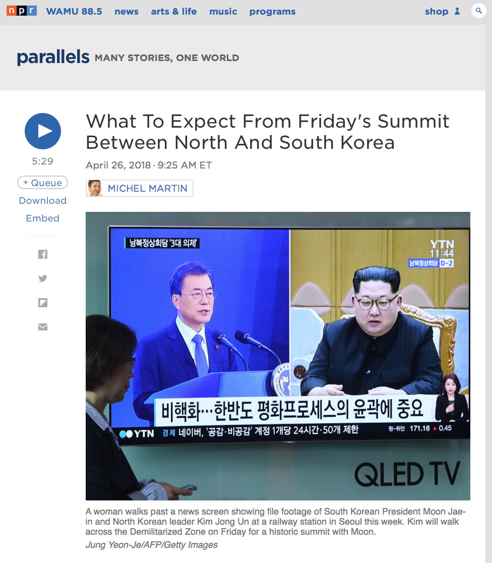 NPR: What To Expect From Friday's Summit Between North And South Korea →