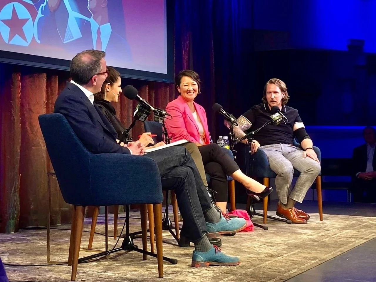 Read MoreJean Lee, co-host of the BBC World Service’s Lazarus Heist podcast, takes part in a live show in New York City in September 2022 to launch Season 2 alongside co-host Geoff White, singer and podcaster Dessa, and cybersecurity expert Michael Barnhart of Mandiant.